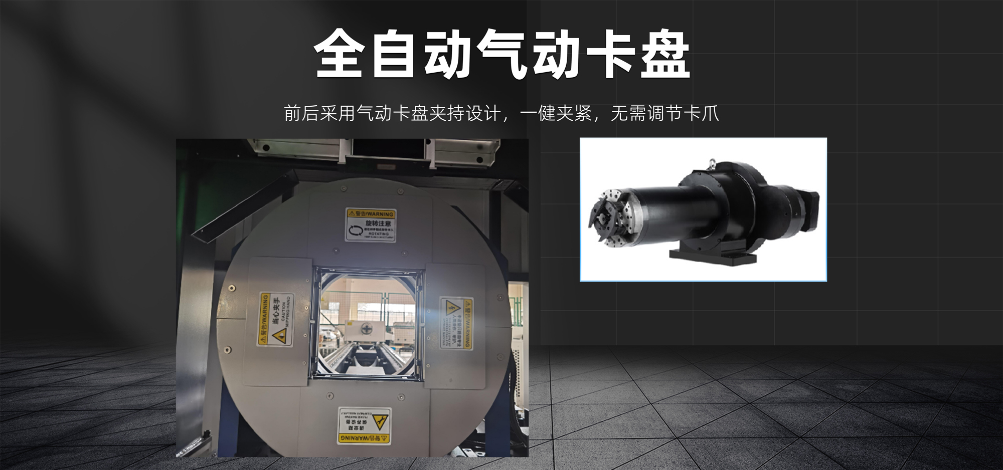 前后采用氣動卡盤夾持設(shè)計(jì),一鍵夾緊,無需調(diào)節(jié)卡爪